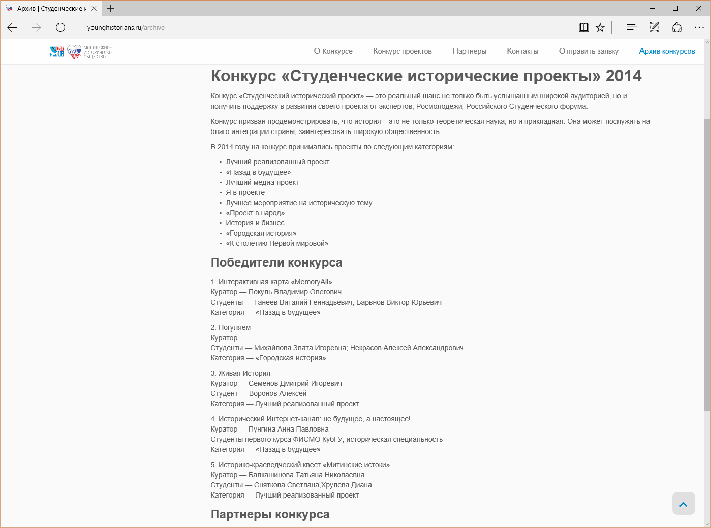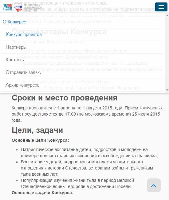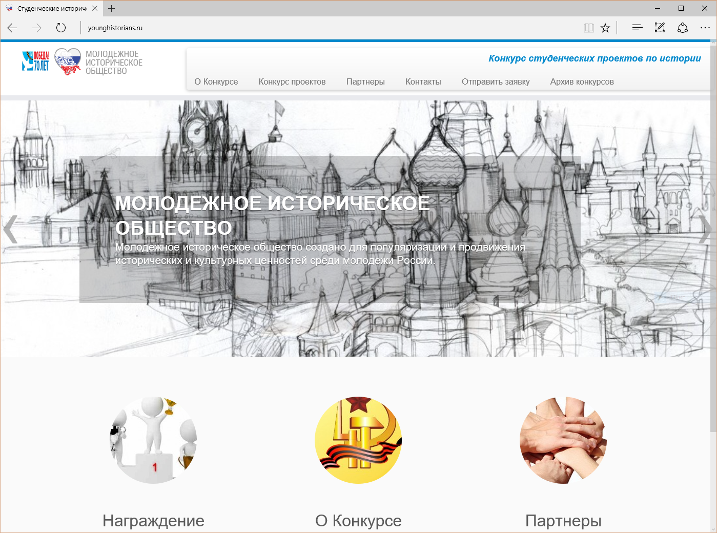 Сайт содержит общую информацию о проекте и все необходимые контакты для участников конкурсов.