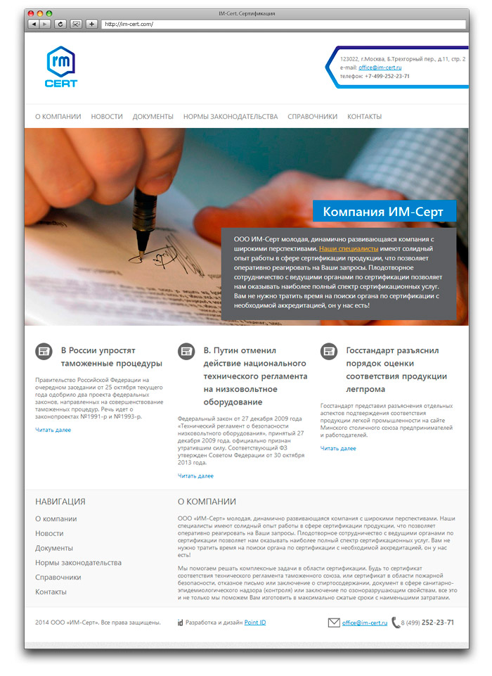 Основной задачей было разработать сайт который включал себя функции презентации компании и ознакомления с видами сертификатов, которые можно получить обратившись в компанию.