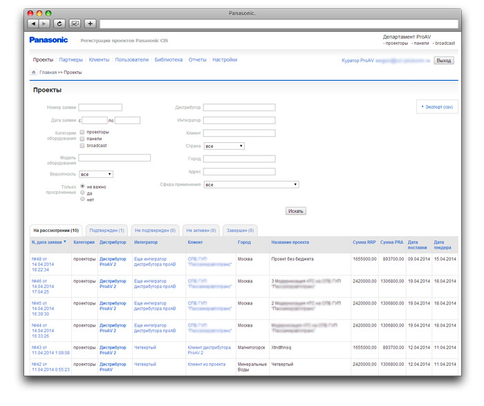 Осуществлена интеграция с интранет-порталом службы технической поддержки системных решений Panasonic (единые справочники городов и оборудования, отслеживание завершения проектов для начисления бонусов и т.п.). Кроме того, есть возможность гибкой настройки системы для нужд конкретных направлений