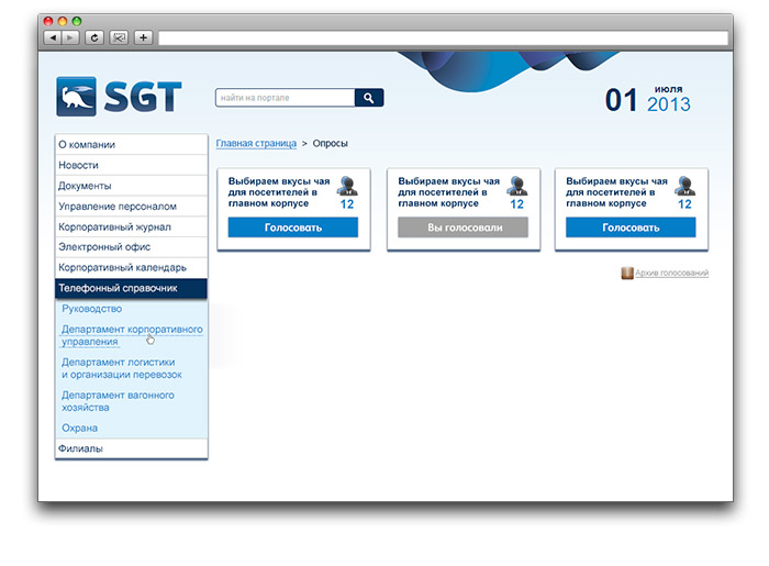 Корпоративный портал компании «СГ-Транс»