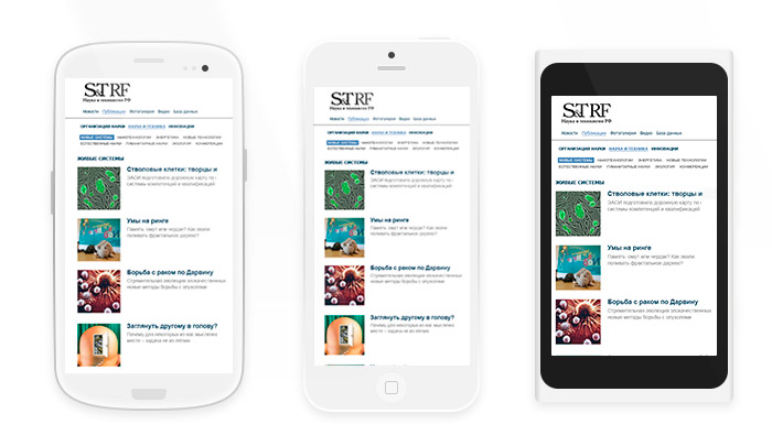Применение адаптивной верстки позволило оптимизировать его работу, в том числе и на смартфонах.Новая структура сайта и модулей